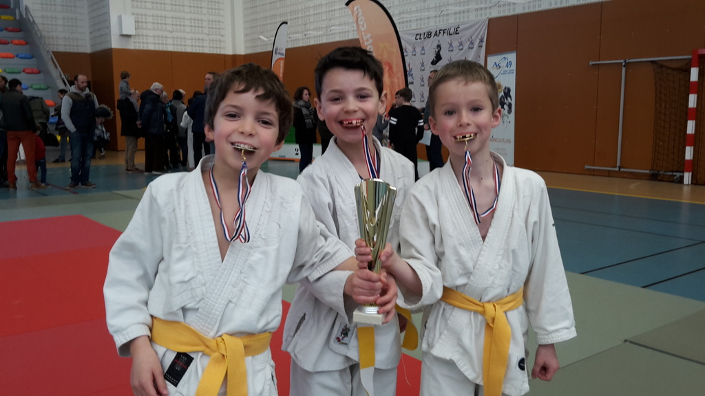 Dimanche 5 mars 2017, nos jeunes judokas ont participé à la journée interclubs organisée par l'ASPTT Angers. Le Judo Club Montreuil Juigné a plutôt bien figuré en présentant 31 judokas âgés de 5 à 12 ans pour un bilan de 12 médailles d'or, 9 médailles d'argent et 10 en bronze. Une nouvelle coupe pour le club qui se classe 3eme derrière le Judo Club Trélazéen et Anjou Ouest Judo.