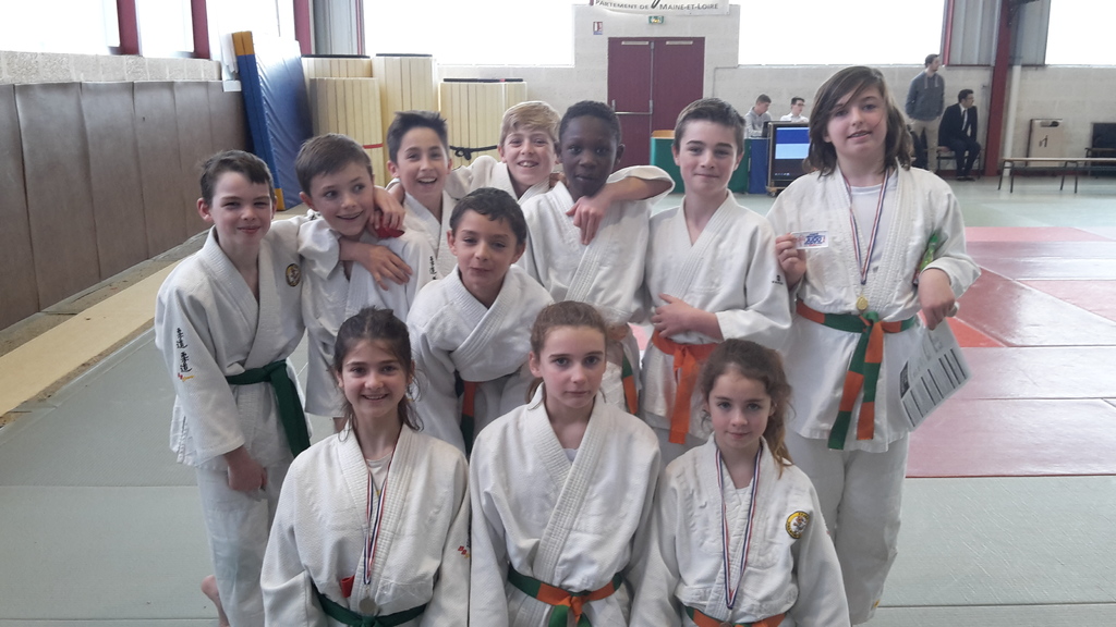 Dimanche 26 mars 2017, c’était le tour des benjamins qui participaient au championnat départemental individuel. Le Judo Club Montreuil Juigné était fortement représenté puisque 11 judokas du club participaient à cette compétition. Il faut féliciter : Alexandre BELLANGER, 3ème en -30kg, Elina LECLER, 3ème en -28kg, Lola MORILLEAU, 2ème en -36kg, et Alexandra GUERIN, championne départementale en -63kg. Malo LUHERNE, en -38kg, et Dariot RIGAMONTI, en -34kg, ont fait une très belle compétition. Ils ont atteint les ½ finales de leurs catégories avant de s’incliner. Ils sont donc 5ème, au pied du podium ! Les autres n’ont pas démérité : Ugo OGER TESSIER en -27kg, Jessy ESTRADE en -30kg, Louis ROCHER GESLIN en -34kg et Alecio BOURRIGAULT en -38kg. Même s’ils ne sont pas classés, ils ont tous remportés des combats ! Il faut vraiment féliciter nos jeunes judokas qui ont montrés ce weekend, une très belle image de notre club, tant par la qualité de leur combat que par leur attitude sur les tatamis.