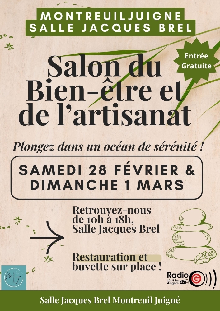 Salon du bien-être et de l'artisanat, salle Jacques Brel, Montreuil-Juigné le WE du 28 février- 1er mars